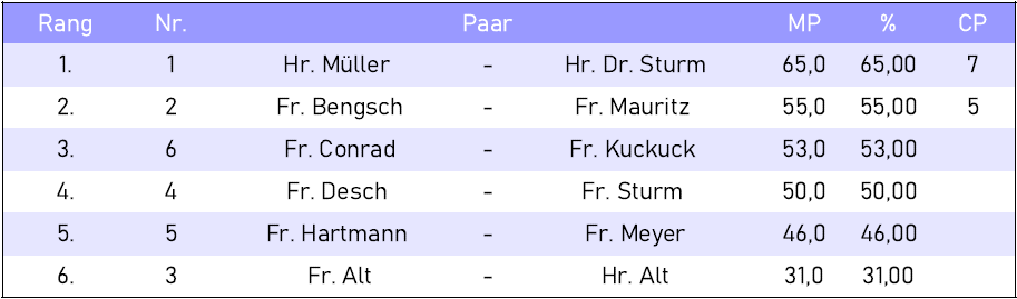 Clubturniere Ergebnis Clubturnier vom 26.11.2025 von Lars|Veröffentlicht am 27. November 2025 50 % = 50,0 MP