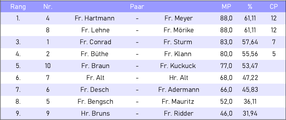 Clubturniere Ergebnis Clubturnier vom 10.12.2025 von Lars|Veröffentlicht am 11. Dezember 2025 50 % = 72,0 MP