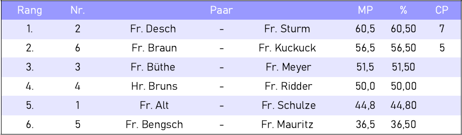 Clubturniere Ergebnis Clubturnier vom 04.02.2026 von Lars|Veröffentlicht am 5. Februar 2026 50 % = 50,0 MP