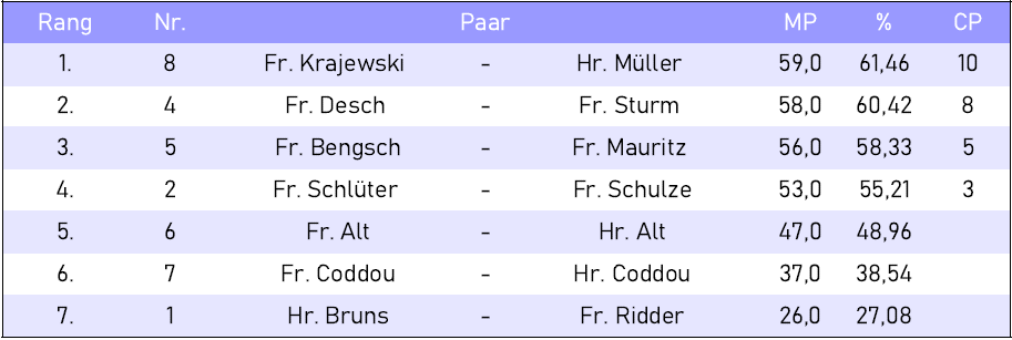 Clubturniere Ergebnis Clubturnier vom 08.04.2026 von Lars|Veröffentlicht am 8. April 2026 50 % = 48,0 MP